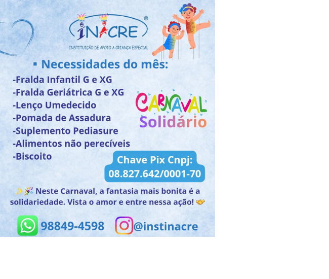 Ã? por isso que a INACRE existe, para apoiar, ajudar e abraçar a causa das crianças especiais.