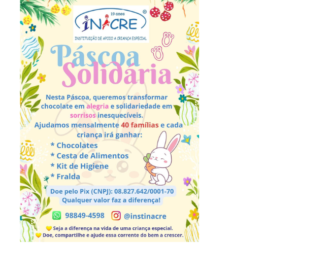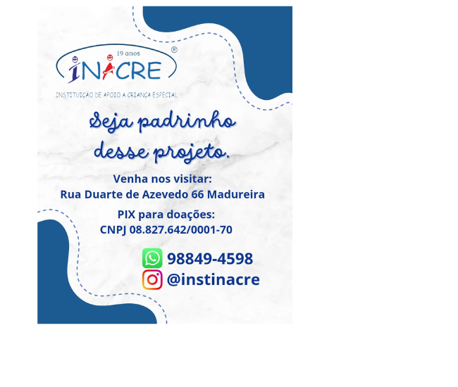 Ã? por isso que a INACRE existe, para apoiar, ajudar e abraçar a causa das crianças especiais.